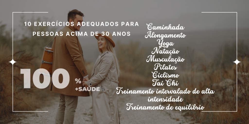 Aqui estão 10 exercícios adequados para pessoas acima de 30 anos, visando melhorar a flexibilidade, força, equilíbrio e saúde cardiovascular: